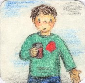 Auf einmal bemerkt Tina, dass das Frühstück noch nicht hergerichtet ist. Hastig nimmt sie die Semmeln aus dem Backrohr und stellt sie im Brotkorb auf den Tisch. Schnell holt Flori noch Marmelade und Butter aus dem Kühlschrank. "Oh weh!", beim Öffnen des Marmeladeglases kleckst Flori sich seinen neuen Pullover an!