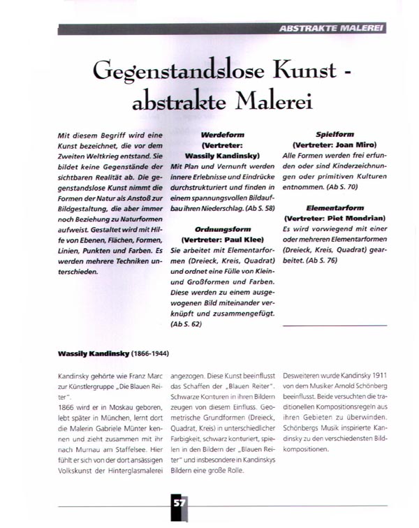 Farben und Formen großer Meister spielerisch mit allen Sinnen erleben Dieses Buch macht neugierig und informiert über Werke von Monet, Marc, Klee, Kandinsky, Miró, Mondrian und Picasso. Dabei finden sich zu konkreten Bildbeispielen faszinierende, unkonventionelle Anleitungen und Anregungen, welche die Werke und Künstler ganzheitlich mit allen Sinnen erlebbar machen: Kreative Techniken, Geschichten, Lieder, Meditationen und Spiele machen so Kunstgeschichte zu einem wahren Event für Kinder. |
