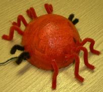 Die Styroporkugel anmalen und gut trocknen lasse. Pfeifenputzer als Beine zurecht schneiden und reinstecken. Am einfachsten geht dies mit Hilfe einer Prickelnadel. Damit die Beine nicht so schnell wieder ausfallen, mit Kleber fixieren. Langes Wollstück befestigen und auf einem Stab aufwickeln. Fertig.