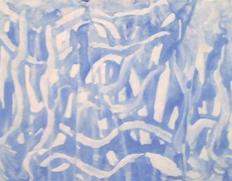Kleister auf das Papier auftragen und mit Händen gleichmäßig verteilen. Mit einem Klacks Farbe Muster mit den Fingern hinein malen. Trocknen lassen.