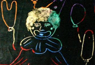 Papier lückenlos mit hellen Farben bemalen. Anschließend alles mit schwarzer Farbe übermalen. Motive in das Bild kratzen.