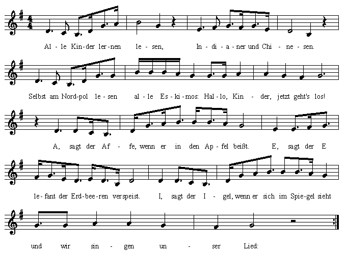 Refrain: Alle Kinder lernen lesen, Indianer und Chinesen. | |