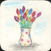 Tina läuft noch schnell in den Garten um frische Blumen zu pflücken. Sie stellt sie in eine Vase – noch sind die Blüten geschlossen. "Die werden sich bestimmt noch öffnen", beruhigt Flori seine Schwester. |