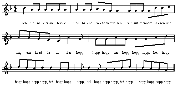 Ich bin ne kleine Hexe und trage rote Schuh, | |